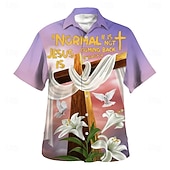 More information about Easter Men's Templar Cross Lily Flowers Shirt Casual Shirt Button Up Shirt Short Sleeve Vintage Retro Vacation Holiday Festival Summer Spring Turndown 3D Print Collared Shirts Purple