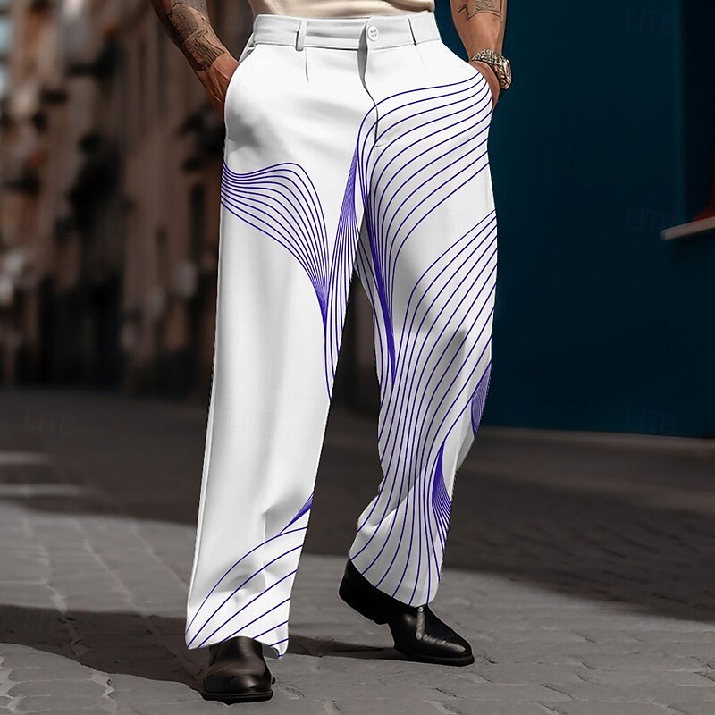 HOT ! Men's Geometric Waves Dress Pants Trousers Suit Pants Mid Waist Casual Dailywear Holiday Relaxed Fit Flat Front Dress Pants with Side Pockets Spring Fall 3D Print Blue Purple Orange
