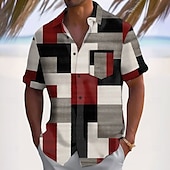More information about Men's Geometric Color Block Patchwork Shirt Casual Shirt Button Up Shirt Short Sleeve Fashion Casual Vacation Dailywear Holiday Summer Spring Turndown 3D Print Collared Shirts Front One Pocket Red
