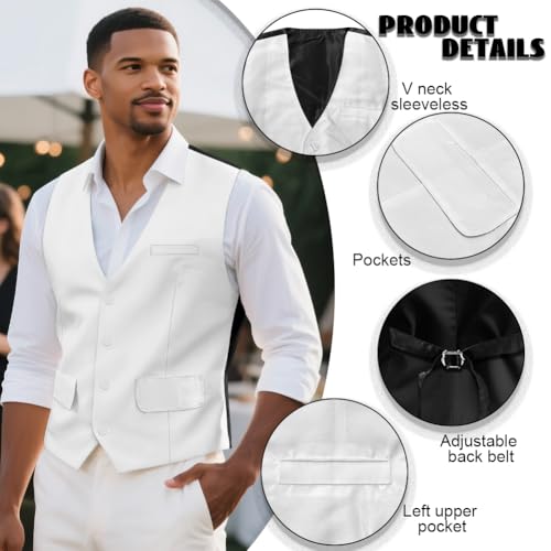 • Feature: Leisure simply style suit vest; 4 buttons front; v-neck; sleeveless, with 2 side pockets and 1 chest pocket; adjustable back-belt can be adjusted to suit your own comfort, more attractive, more appealing. Timeless, versatile, and EVERY Man's go-to choice for a polished, confident style