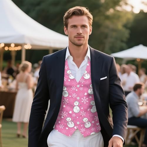 Mens Christmas Suit Vest Slim Fit Button Western Vests with Pocket 1