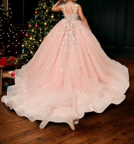 Flower Girl Dresses for Wedding Floral Tulle First Communion Dresses Princess Birthday Ball Gowns for Teens 4