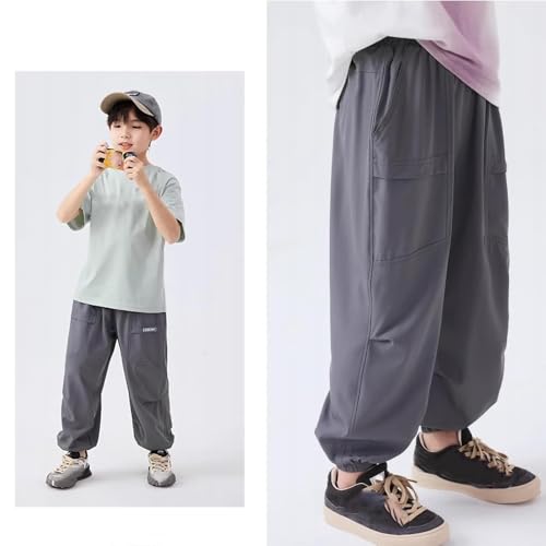 Boys Cargo Pants Casual Elastic Wasit Trouser with Multi Pockets Lounge Solid Color School Pants for Boys 5-15 Years 7