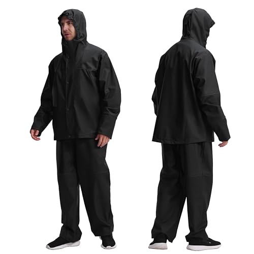 • Protective & Durable:Complete rain suit includes a hooded jacket and bib overalls for full coverage, Focused on extremely durable fabrics and waterproof protection against leaks and jams and built to last.