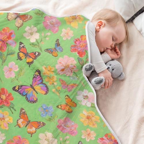 Custom Colorful Flowers and Butterflies Cotton Muslin Swaddle Blankets Cozy Customized Image Blanket for Newborns, Infants, & Toddlers 30x40in cositas para Bebes recien nacidos