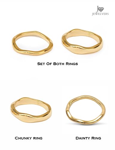 JewelVerse 18K Gold Plated Irregular Ring For Women | Gold Rings For Women | Stackable Rings | Classic Simple Wedding Band Ring Size 6-10 3
