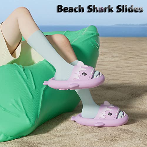 • 🌊【Unique Design】Cute cartoon ice cream shark sliders with shark pattern and a tooth design on the toe cap,make the whole summer more interesting.The shark tooth design at the opening of the slippers is flexible and vivid,designed with a concave sole design protects your toes from kicking against table legs or door sills.