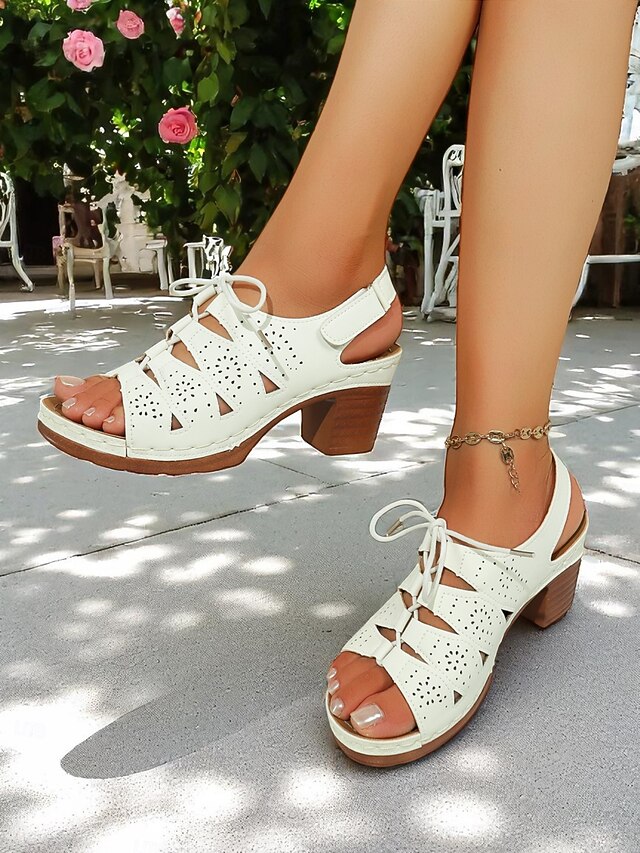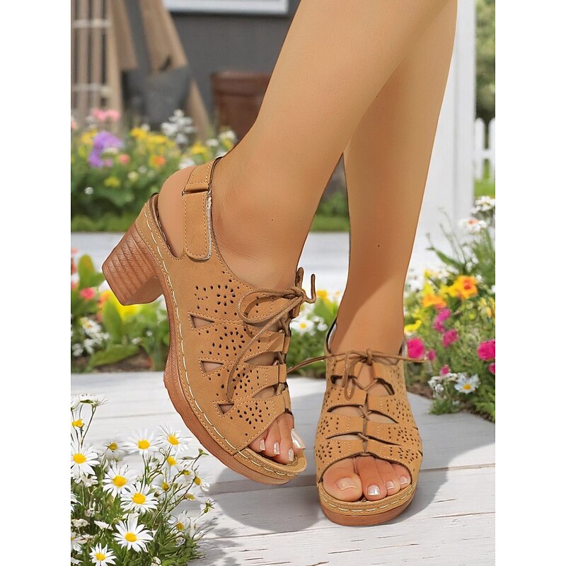 Women's Cut-Out Chunky Heel Sandals – Retro Lace-Up Design with Cushioned Insole, Ideal for Shopping, Outdoor Festivals and Summer Brunch 20