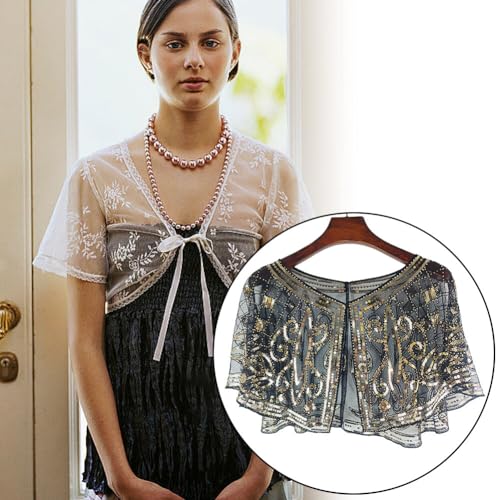 Zcargel Beaded Evening Cape, Beaded Bridal Shawls Evening Cape Vintage Mesh Cloak Handmade Sequin Beaded Evening Shawl Wrap 5