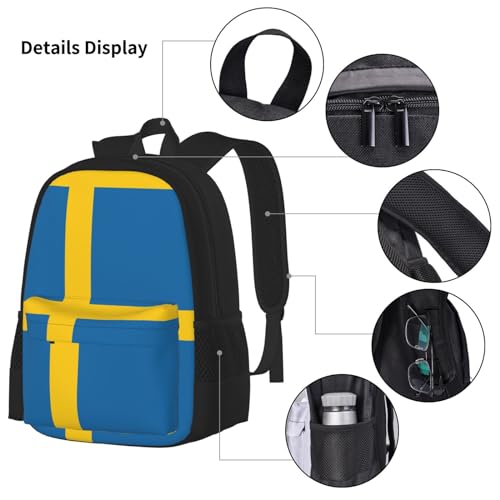 More information about WURTON Swedish Flag Print Shoulder Backpack 3 In 1 Bookbag Set Lunch Box Pencil Case Travel Laptop Daypacks