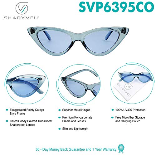 More information about ShadyVEU Slim Small Exaggerated Cat Eye Sunglasses Clear Translucent Candy Color Tinted Lens Shades