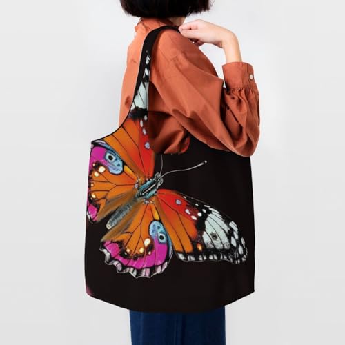 Canvas Tote Bag for Women Shoulder Tote Purse Reusable Grocery Bag Pretty butterfly Aesthetic Shopping Bags