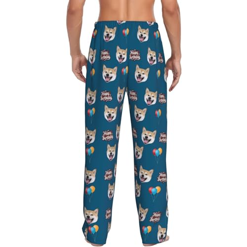 More information about Custom Pajamas Pants Happy Birthday with Photo for Mens, Personalized Birthday Gifts Pj Bottoms Sleepwear Dog Pet Face for Women Grandfather