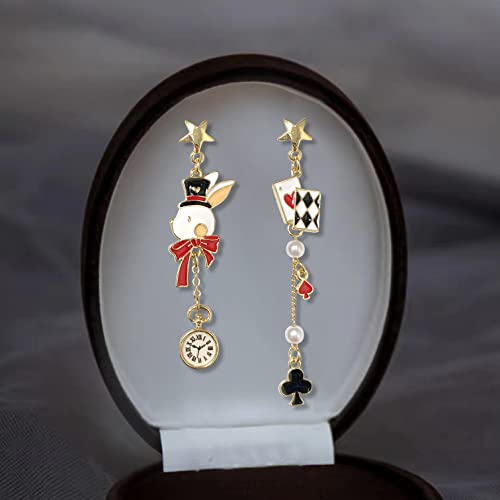 Asymmetric Poker Card Clock Poker Dangle Earrings Chic Red Heart Ace Enamel Gold Plated Playing Cards Rabbit Alarm Clock Drop Earrings 6