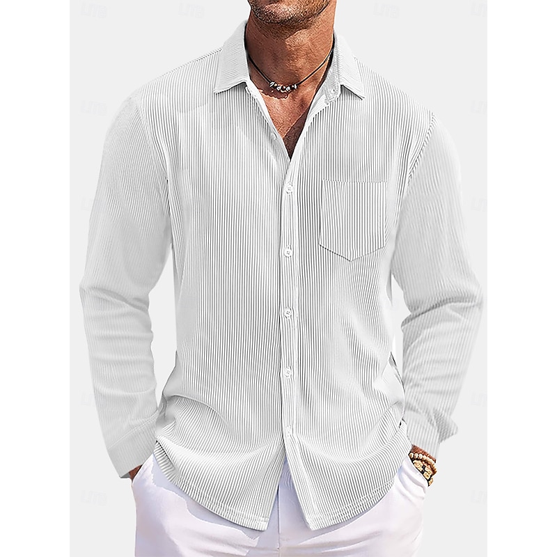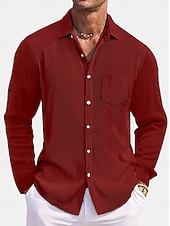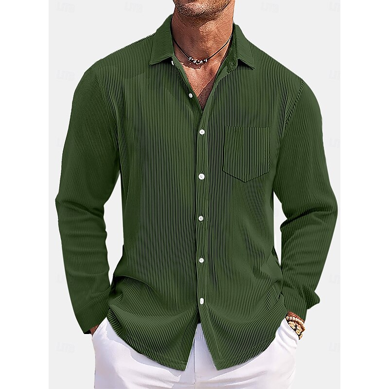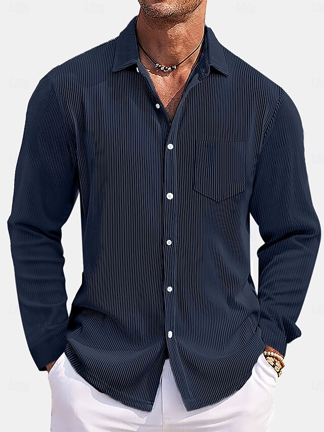 More information about Men's Shirt Casual Shirt Corduroy Shirt Button Up Shirt Black White Red Navy Blue Blue Long Sleeve Plain Turndown Outdoor Office / Career Pocket Clothing Apparel Fashion Casual
