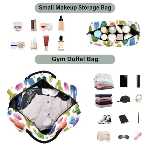 Duffel Bag Set for Travel Gym Sport, Weekender Carry on Overnight Bags for Women Men-Colored Cactus Print 2