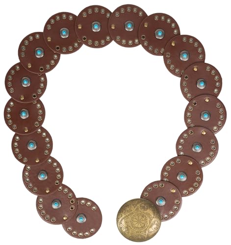 Wide Disc Belt for Women - PU Leather Hollow Out Turquoise Round Belts Vintage Western Cowboy Cowgirl Waist Belt 7