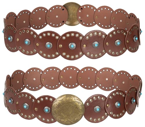 Wide Disc Belt for Women - PU Leather Hollow Out Turquoise Round Belts Vintage Western Cowboy Cowgirl Waist Belt 1