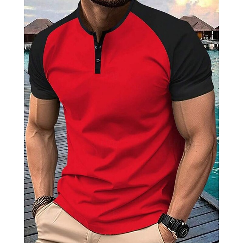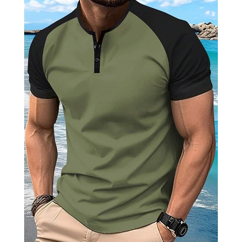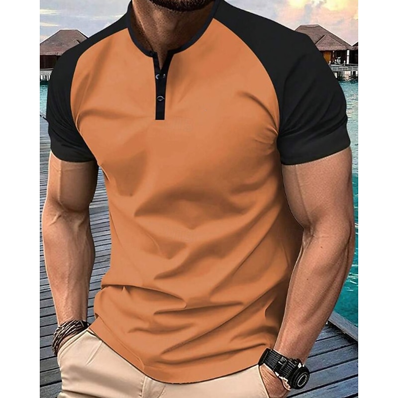 More information about Men's Golf Shirt Golf Polos Shirts Work Casual Henley Short Sleeve Basic Modern Color Block Patchwork Buttons Summer Regular Fit Dark Red Orange Green Military Green Grey Golf Shirt
