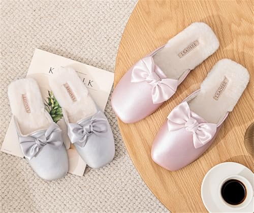 More information about Luxurious Bow Knot Mules for Women High Class Closed-Toe Leather Slippers Elegant House Shoes Indoor Outdoor