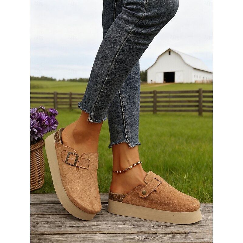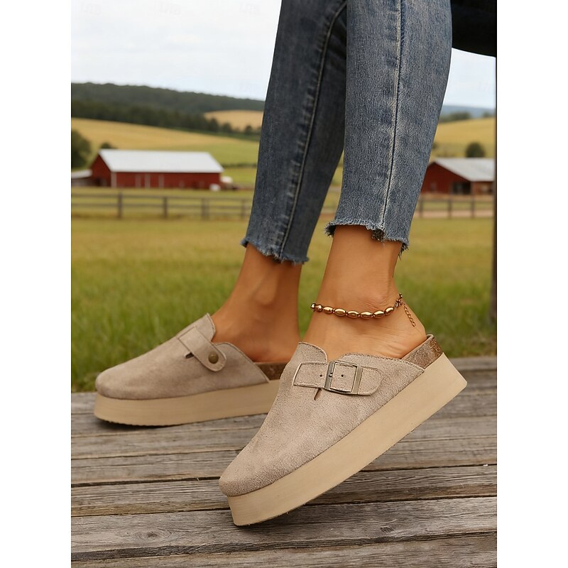 Why Choose Women's Platform Mule Slip-On Shoes with Adjustable Buckle, Casual Retro Farmhouse Style for Daily Outfits?