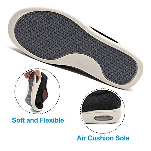 • ULTIMATE COMFORT FEELING - A visible air cushion design to absorb shock, to provide a forgiving, easeful feel in every foot strike. Removable insole is cushioned for extra comfort and can accommodate custom orthotics or diabetic insoles. The lightweight and sturdy sole provides grip for both indoor and outdoor wear.