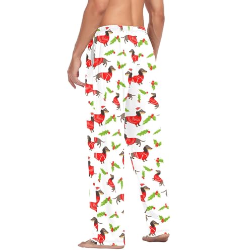 Christmas Dachshunds Men's Pajamas Pants Cotton Sleep Bottoms Pants Lounge Sleepwear - S
