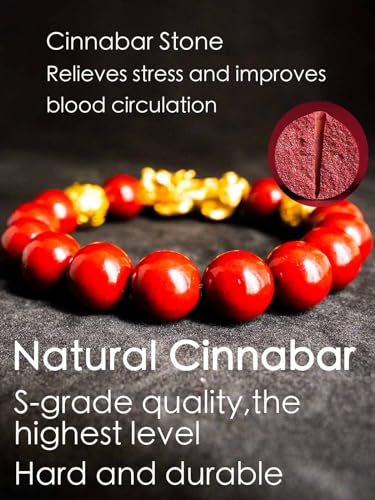 Item display length: 7 inchesMetal type: CinnabarClasp type: Double SafetyChain type: Bead ChainFeng Shui Bracelet: In Asian culture, Pixiu is a lucky beast that symbolizes wealth attraction and ward off evil people. Cinnabar bracelet prevent psychic attacks and eliminate negative energy. Pixiu bracelet comes with a consecration certificate, meaning good luck, wealth, health, and peace.top-grade Bracelet: This feng shui cinnabar wealth bracelet is made of 24K gold-plated Pixiu, 2 gold-plated beads and 13 natural cinnabar beads. Cinnabar Pixiu bracelet is suitable for wrist circumference: 5.9~8.2 inches, suitable for most men and women. Natural cinnabar is a natural red gemstone formed by long-term natural weathering of minerals after volcanic eruptions, which has a calming and skin-protecting effect.Exquisite Craftsmanship: Cinnabar protection bracelet is carefully handmade by master craftsmen. Suitable for wrist circumference 5.9~8.2 inches (15~21 cm). The gold beads and gold pixiu of the dragon bracelet are polished with 24K gold and electroplated with vacuum high pressure and high temperature, never fade, carved with elegant runes, matched with natural cinnabar beads, combining exquisite craftsmanship and excellent quality.Durable Crystal Rope: Cinnabar pixiu bracelet is suitable for wrist circumference: 5.9~8.2 inches (15~21 cm). Pixiu (Size: 1.05*0.47 inches (26.5*12 mm), Material: 24K gold-plated pixiu); Gold beads (Diameter: 0.47 inches (12 mm), Material: 24K gold-plated beads); Red gemstone beads (Diameter: 0.47 inches (12 mm), Material: natural cinnabar). The beads bracelet are connected by a durable crystal elastic rope, ensuring the bracelet is long-lasting.Perfect Gift: You can choose this good luck bracelet as a gift for Christmas, Thanksgiving, Mothers day, Fathers day, birthday, anniversary, graduation ceremony, etc. Give it to yourself, your lover, your family and friends, and bring them blessings and good luck.Best Service: This high-quality cinnabar dragon bracelet is one of the most meaningful gifts. We offer a full-refund or exchange guarantee. If you have any questions, please feel free to contact us, we will reply to you within 12 hours, and do our best to make you satisfied.