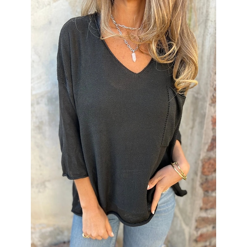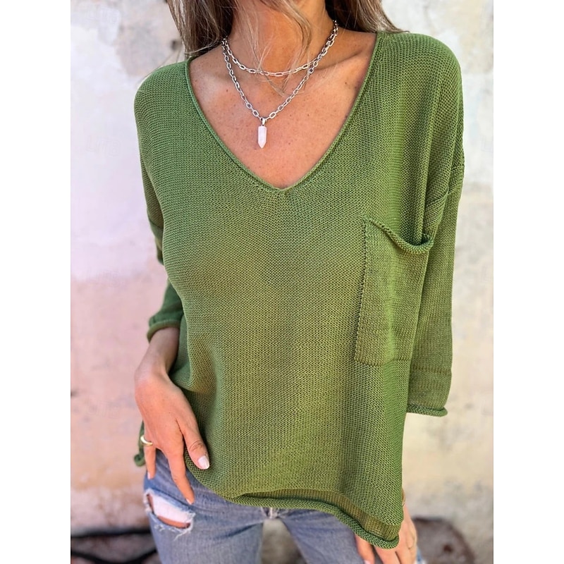 More information about Women's Sweater Pullover Daily Stylish Casual Solid Color Ribbed V Neck Pocket Knitted Long Sleeve Regular Tops Knit Outdoor Daily Black White Summer Spring