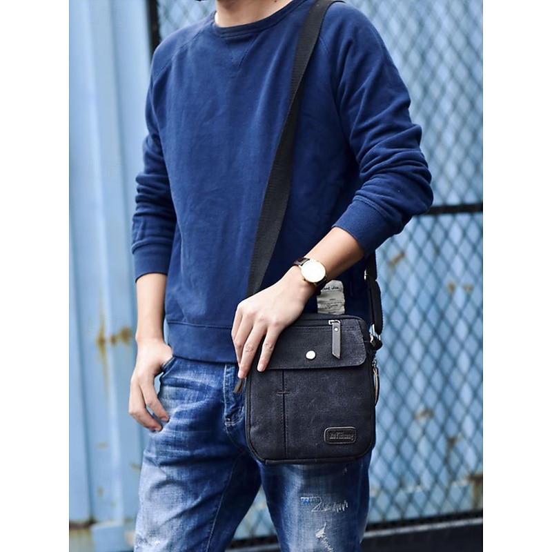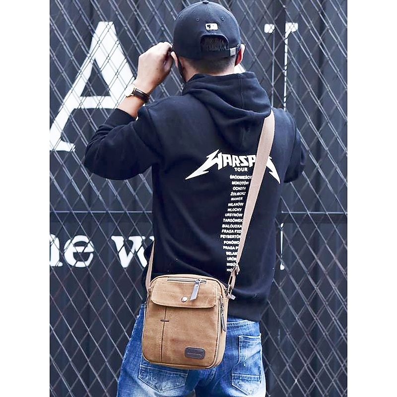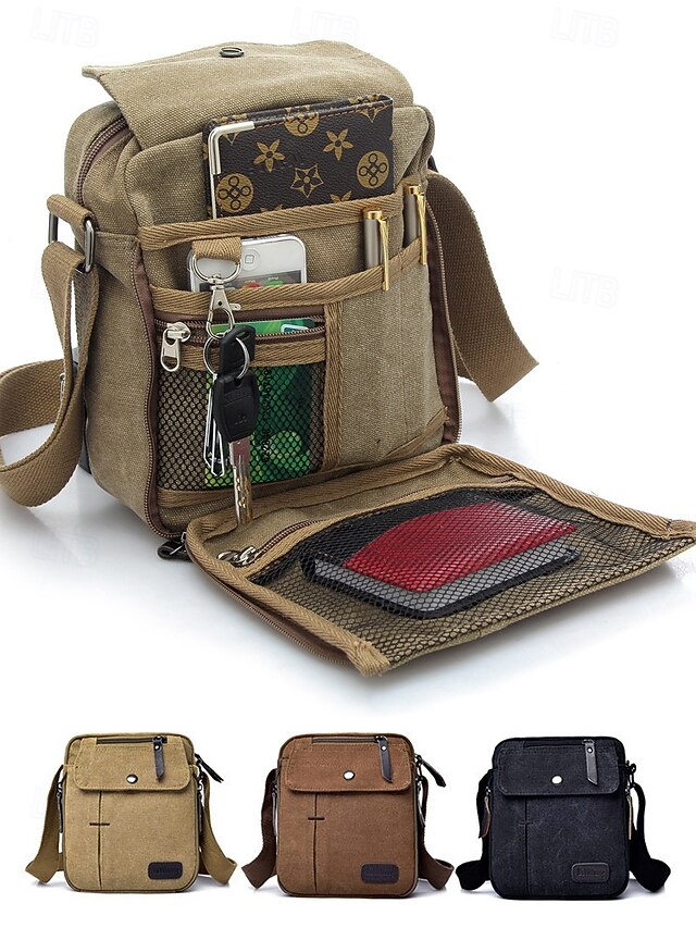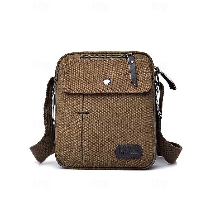 More information about Men's Canvas Crossbody Bag – Multi-Pocket Vintage Design with Adjustable Strap, Ideal for Travel, Work or Casual Daily Use Black Khaki Coffee