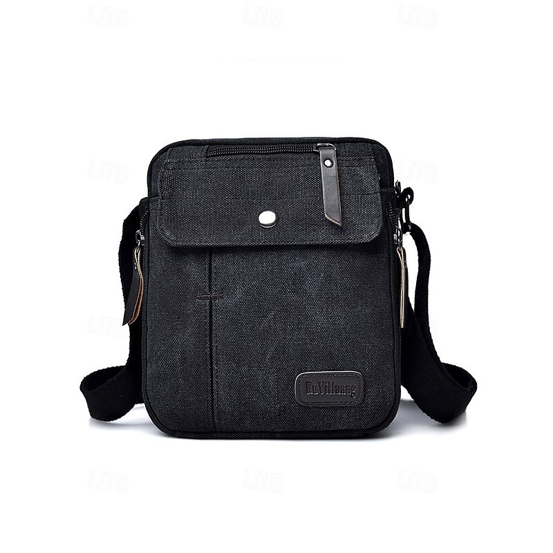 Men's Canvas Crossbody Bag – Multi-Pocket Vintage Design with Adjustable Strap, Ideal for Travel, Work or Casual Daily Use Black Khaki Coffee 15