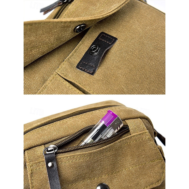 Men's Canvas Crossbody Bag – Multi-Pocket Vintage Design with Adjustable Strap, Ideal for Travel, Work or Casual Daily Use Black Khaki Coffee 11
