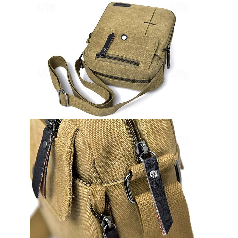 Men's Canvas Crossbody Bag – Multi-Pocket Vintage Design with Adjustable Strap, Ideal for Travel, Work or Casual Daily Use Black Khaki Coffee 7