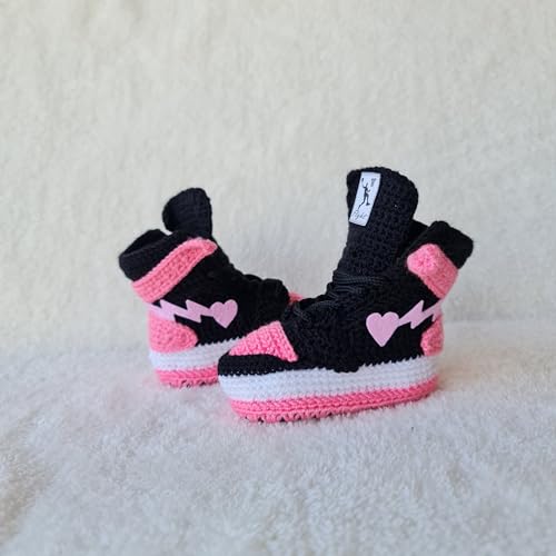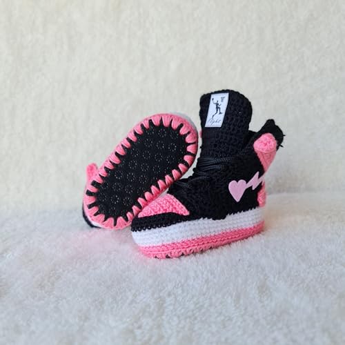 Crochet Baby Sneakers Pink Booties, Organic Handmade Newborn Outfit, baby Basketball Plush Socks, Customizable for Gender Reveal & Birth Announcements, Warm Winter for Newborns Socks 6