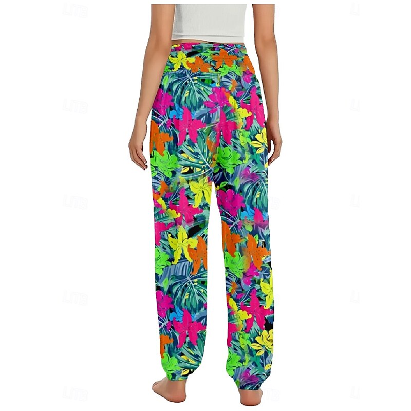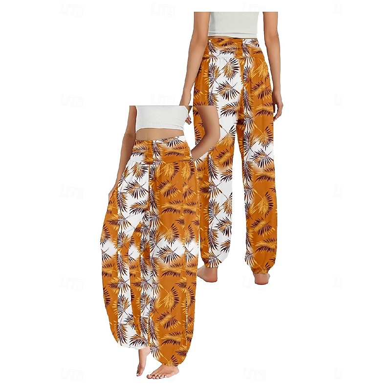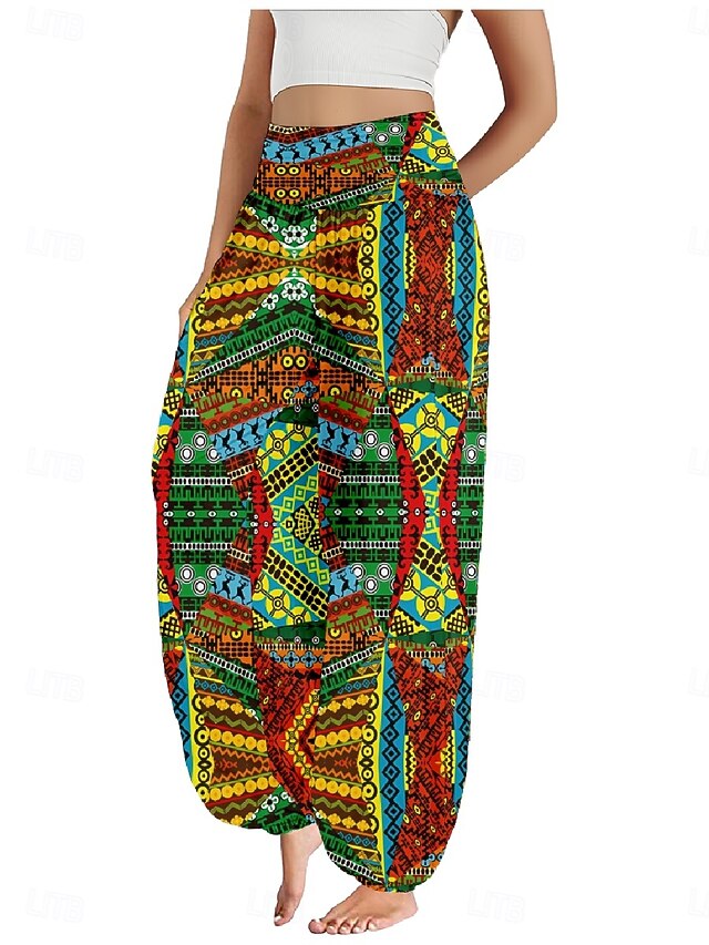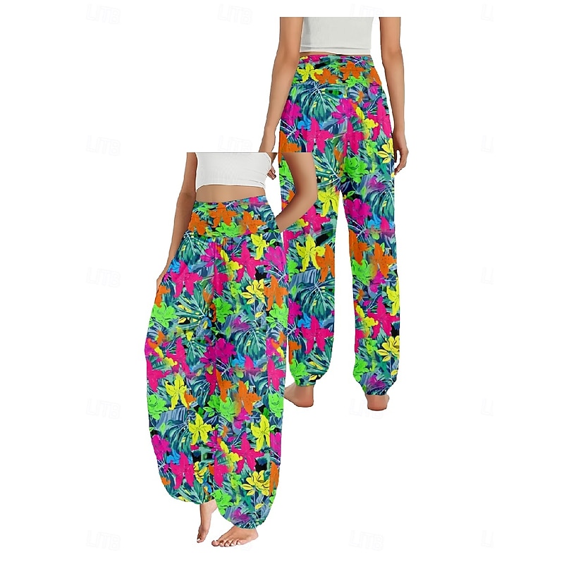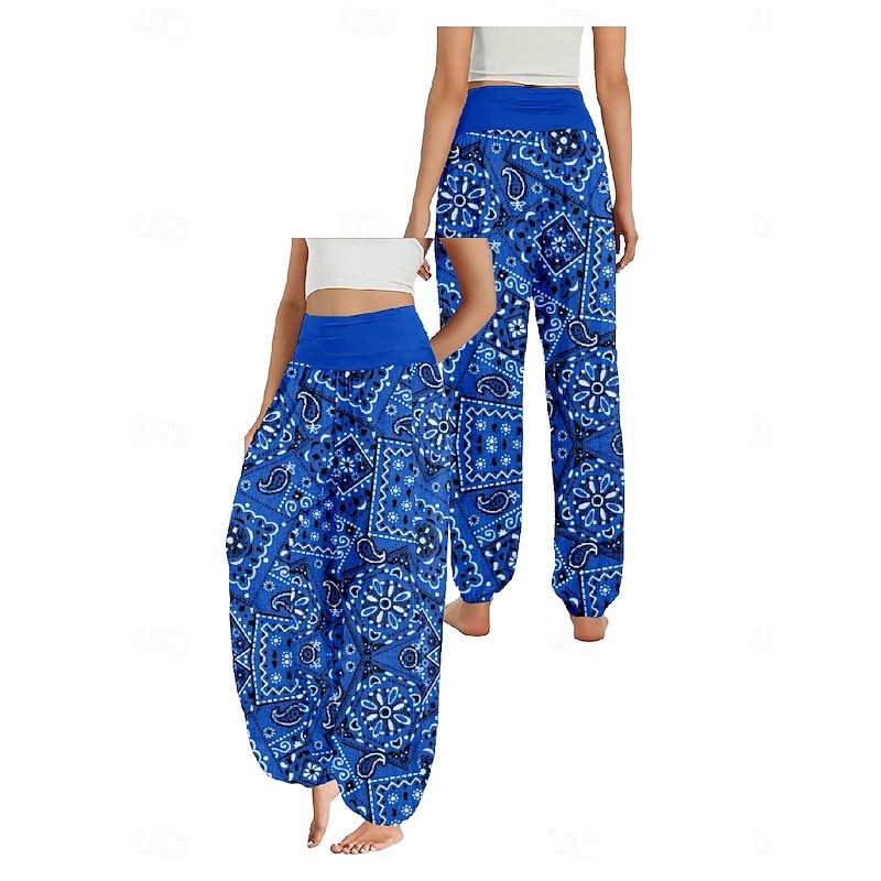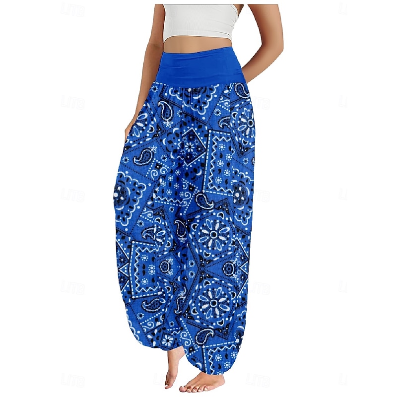 More information about Women's Linen-Inspired Pants Wide Leg Pants Trousers Ethnic Style Casual Boho Full Length High Waist Floral Graphic Pocket Elastic Waist Printing Breathability Soft Micro-elastic Outdoor Yoga Blue
