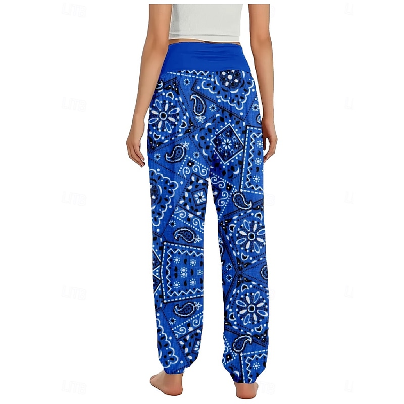 Women's Linen-Inspired Pants Wide Leg Pants Trousers Ethnic Style Casual Boho Full Length High Waist Floral Graphic Pocket Elastic Waist Printing Breathability Soft Micro-elastic Outdoor Yoga Blue 13