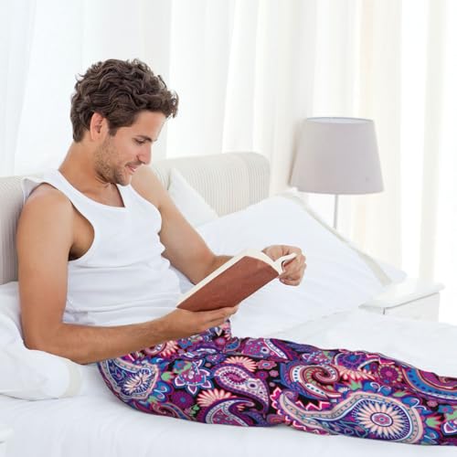 HOT ! Blue Purple Paisley Mens Pj Pants,Soft Men Lounge Pants,Mens Pajama Pants Bottoms,Sleep Pants For Men