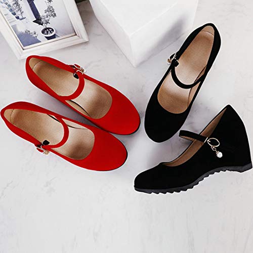 • ➤UNIQUE QUALITY & COMFORTABLE】: Womens Ladies Fashion Round Toe Wedge Pump Shoes, Simple Sleek vamp;Buckle Ankle Strap Easy On/Off; Loafers Anti-slip Platform Lightweight, High Strength, Good Fexibility, Finished with Lightly Cushioned for All Day Comfy and Eco-Friendly Design. Instep ventilation pores for your comfort.