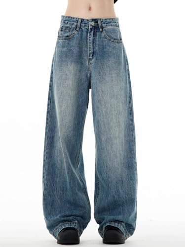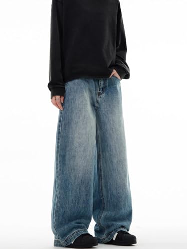 Men's Jeans Vintage Wash Cleanfit Blue Denim Jeans Straight Leg Loose Fit Trouser for Men 6