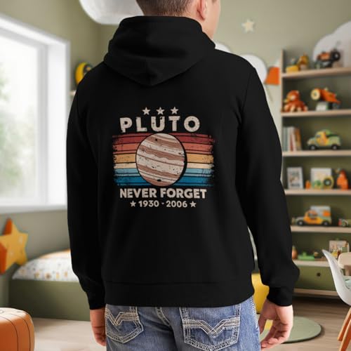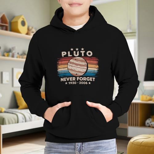 HOT ! Kids Never Forget Pluto Funny Retro Astronomy Space Vintage Boys Girls Lightweight Kangaroo Pocket Hoodies