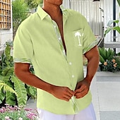 Highlights [Fabric] : Crafted from high-quality polyester, this men's Hawaiian shirt provides a lightweight and breathable feel, ideal for keeping cool during warm summer days. The fabric offers durability and easy maintenance, perfect for frequent wear and vacation adventures. [Fit] : Featuring a regular fit, this shirt combines comfort with a modern silhouette. It's designed to provide ease of movement and a laid-back style, making it suitable for both casual outings and beach activities. [Design Highlights] : The shirt is styled with a classic turndown collar and button-up front, adding a touch of timeless appeal. Distinctive design details include the subtle striped pattern featured on the inside trim of the button line and sleeve cuffs, as well as a striking white palm tree graphic on the left chest pocket that enhances the tropical vibe. [Occasions] : This Hawaiian shirt is perfect for a variety of settings, including daily wear, vacations, and holiday celebrations. Whether you're heading to a beach resort or enjoying a relaxed weekend at home, this shirt brings a sense of tropical charm and style. [Size Range] : Available in a range of sizes from S to 3XL, this shirt accommodates various body types, ensuring a suitable option for everyone seeking a blend of comfort and style.