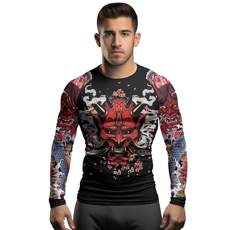 HOT ! Men's Samurai Long Sleeve Rash Guard for Jiu Jitsu MMA BJJ Grappling - Quick Drying, Fade Resistant Graphics