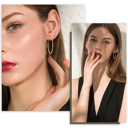 • Lightweight & Comfortable for All-Day Wear: Designed to be ultra-lightweight, these 14k thin hoop earrings won't tug on your ears, ensuring a comfortable fit throughout the day. Their secure closure provides easy wear and a snug hold