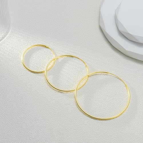 14 Karat Gold Hoop Earrings, 14K Gold Hoop Earrings for Women, Dainty Gold Vermeil Endless Thin Hoops, 14K Gold Plated 925 Sterling Silver, 35/45/55mm 5