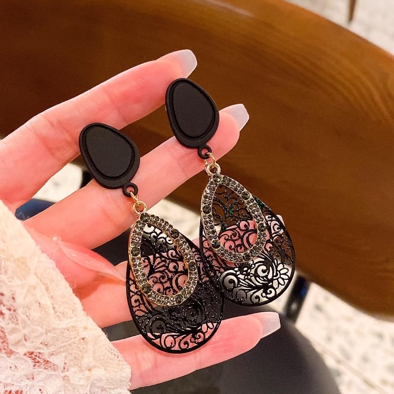• High Quality Material&Unique Design:In Size Of 2.75inch*1.06inch,These Ear Clips are Made of High Quality Alloy,Fastness ,Decorated With Superior Zircons,Which Shine Brighter.These Earrings Clip On are Designed in Black Color,With Two Ellipses On, The Larger One is Designed in Hollow Type flower Pattern,the Smaller Ellipse is Fully-Drilled by Zircons,Make it More Elegant and Classic in Daily Wear.