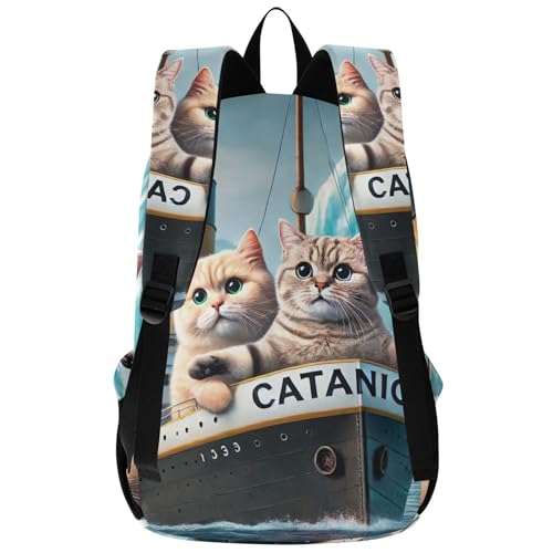 Cute Cats Titanic Kitten Lightweight Casual Backpack for Men Women Cool Bookbag for Teen Girls 7