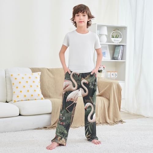 Flamingo Berry Flowers Boys Long Pants Soft Trousers Elastic Waist Kids Lounge Bottoms with Pockets S-XL 4