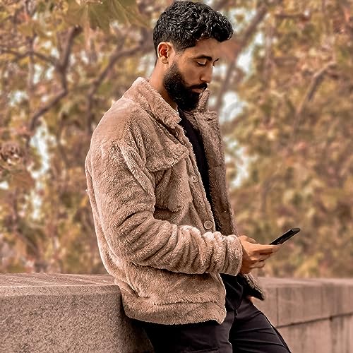 GINGTTO Mens Furry Button-Up Jacket 4 Pockets Fluffy Coat For Men 7