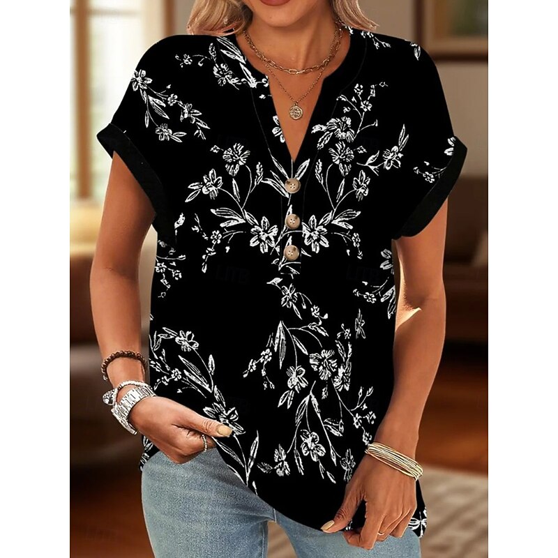 This Women's Cotton Shirt Floral Graphic Vintage Tropical contemporary Short Sleeve V Neck Regular Tops Daily Print Black Yellow Red Blue Green Summer Spring combines elegant design with practical functionality. Every detail has been carefully considered to ensure you get the best possible experience. The top-grade construction means this product will serve you well for years to come.