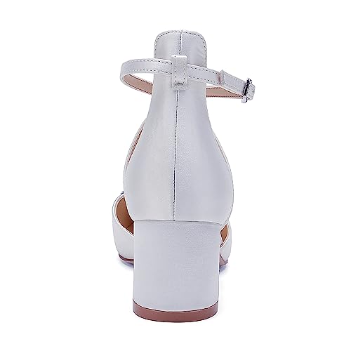 HOT ! Pointed Toe Satin Wedding Shoes - White Low Heels, Rhinestones, Cross Strappy Block Heels - Comfortable Dress Shoes for Women